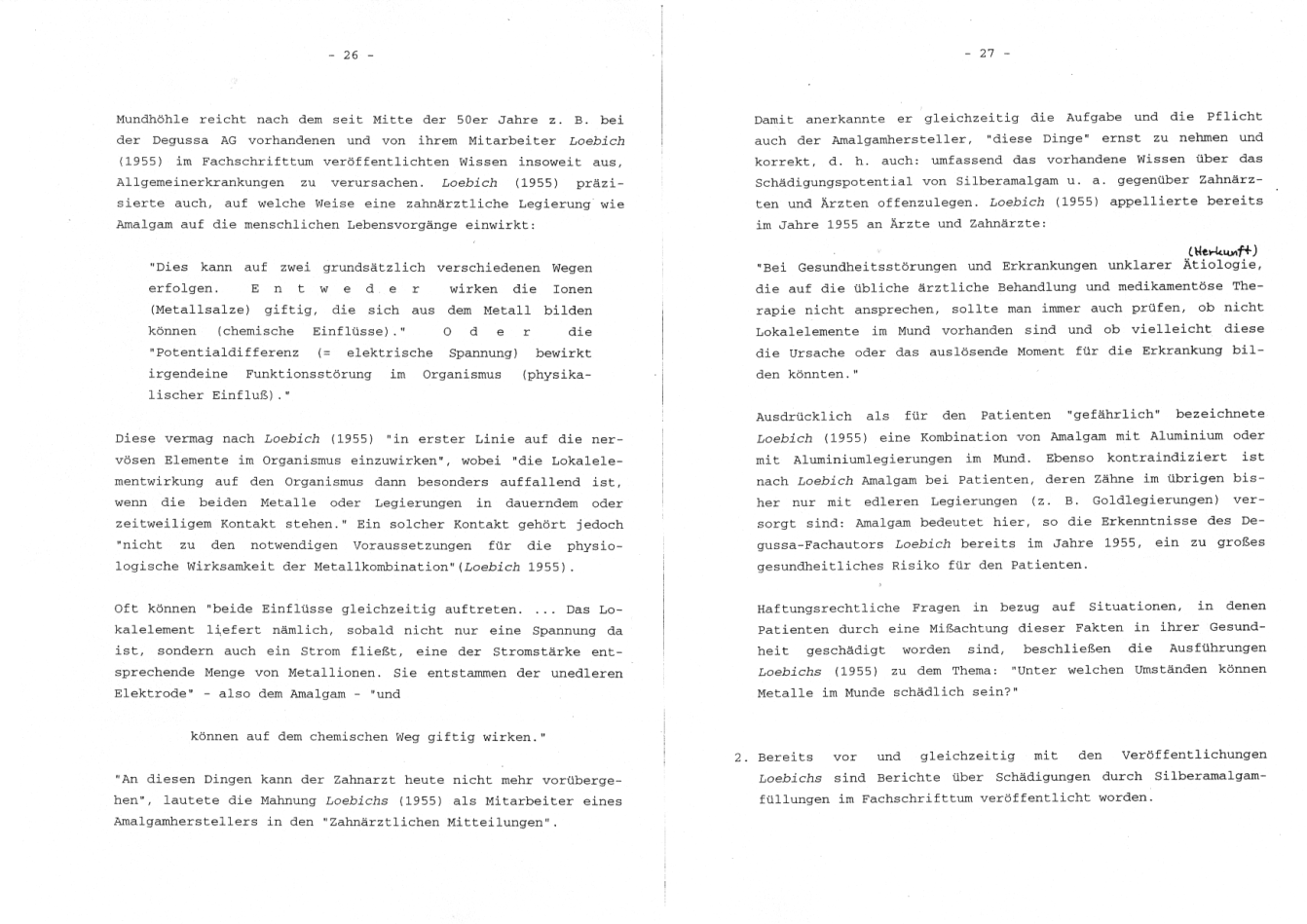 Loebich (1955) im Fachschrifttum veröffentlichten Wissen