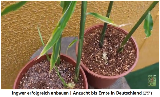 Anzucht mit neuen Ingwerwurzeln in Weiss [3] - Einige Ingwerpflanzen wachsen im Kübel [9] -