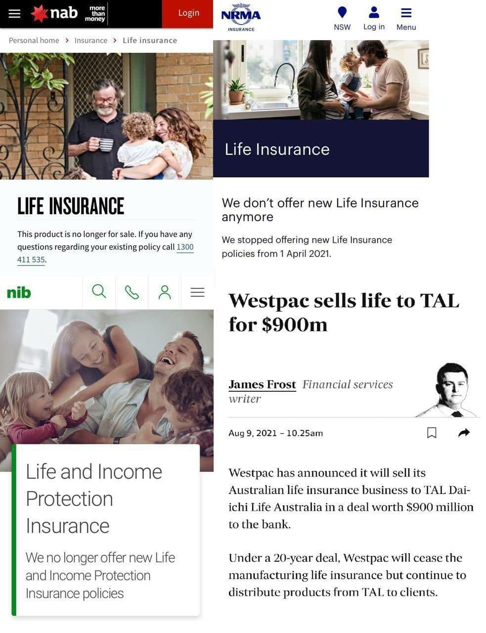 Australien 30.8.2021: Lebensversicherungen stoppen neue Verträge