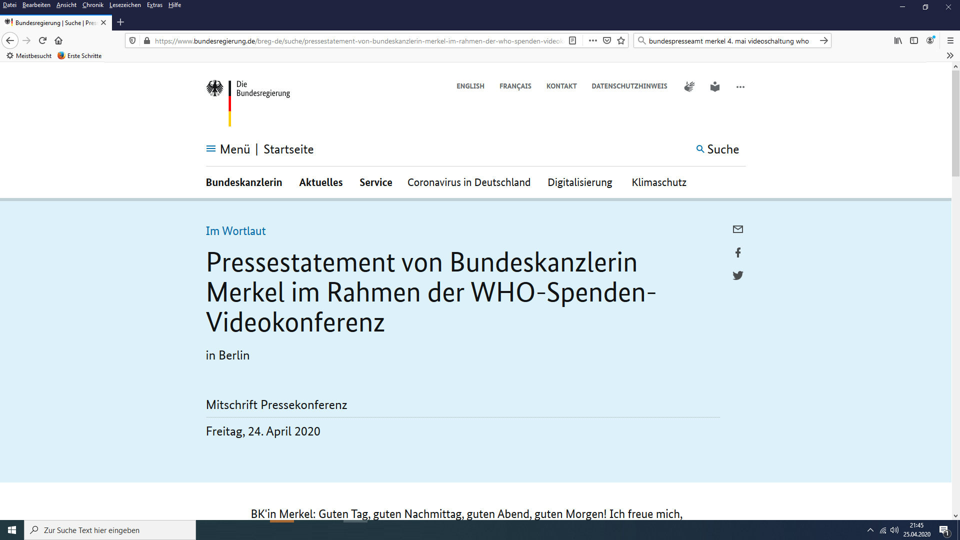 Ich möchte mir nicht ausmalen, wie wir in drei, vier Jahren auf diese Wochen und Monate zurückblicken werden, wenn das Durchschnittsalter der Toten über der durchschnittlichen Lebenserwartung liegen sollte, Millionen Arbeitslose auf der Straße sitzen, der Mittelstand, der Hartz IV finanziert, vernichtet ist. Wenn viele Restaurants für immer geschlossen haben, aber die Suppenküchen geöffnet sind. Auch daran sollte die Bundeskanzlerin denken, wenn sie ihre nächste Regierungserklärung hält.