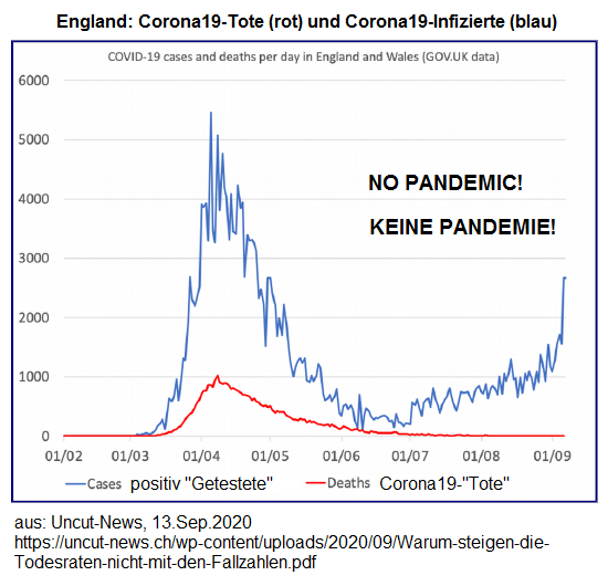 steigen, Totenzahl aber bleibt tief: https://uncut-news.ch/wp-content/uploads/2020/09/Warum-steigen-die-Todesraten-nicht-mit-den-Fallzahlen.pdf [3] Corona19-"Tote"
