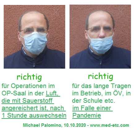 1) Im OP-Saal wird die Maske über die Nase getragen, die