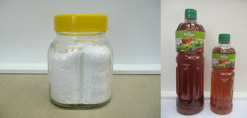 Apfelessig dazumischen, aufschäumen lassen (das Glas sollte