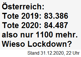 Tote in Österreich 2019: 83.386 - 2020: 84.487