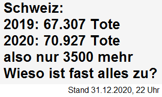 Tote in der Schweiz 2019: 67.307 - 2020: 70.927