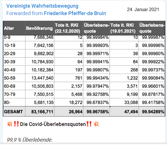[3] Corona19-Überlebensquote 99,9%, Tabelle vom 24.1.2021: