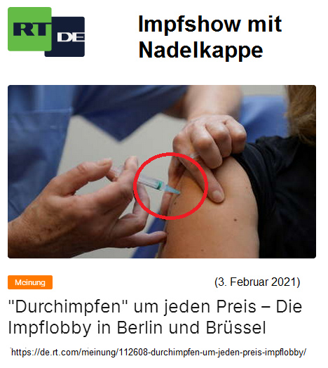 RTDeutsch mit FAKE-Impfshow mit Nadelkappe, 3.2.2021: