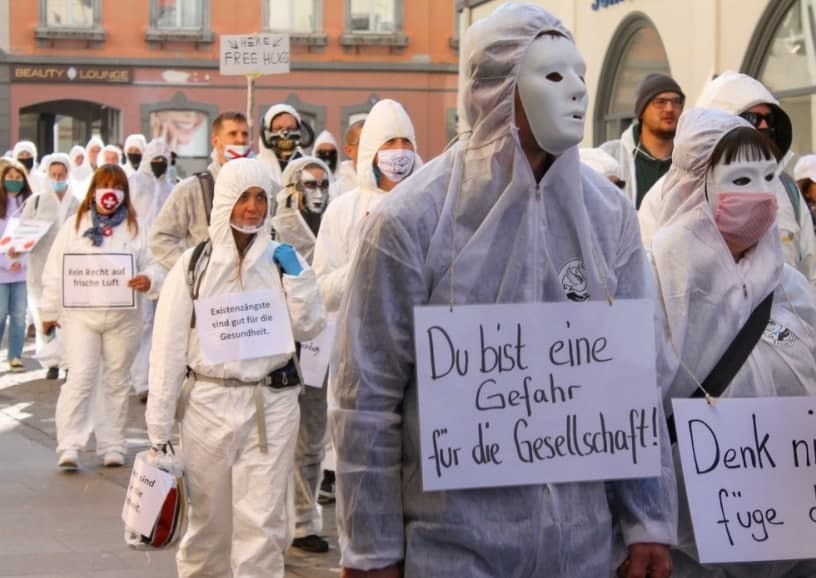 Demonstration in Chur in Schutzanzügen gegen den