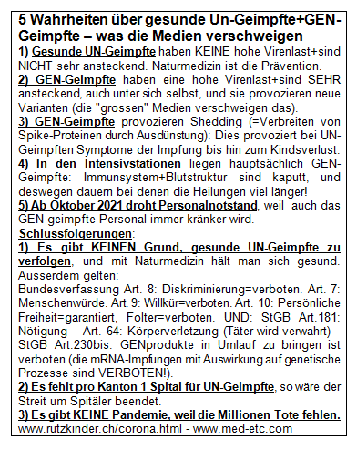 Flyer: "5 Wahrheiten über gesunde Un-Geimpfte+GEN-Geimpfte - was die Medien verschweigen" vom 2.9.2021 [43]