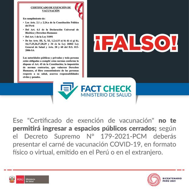 Al respecto, el titular de Salud explicó que existen casos excepcionales de personas que no pueden vacunarse contra el coronavirus en el país. “Son realmente excepciones muy puntuales que pueden condicionar el no vacunarse frente a una enfermedad. (...) Esas excepciones las tiene que dar definitivamente el médico tratante. No podemos decir que en este momento tal persona sí se debe o no se debe vacunar. Pero por supuesto el médico tratante establece el diagnóstico y el Minsa lo valida sin ningún tipo de dudas, aseguró.