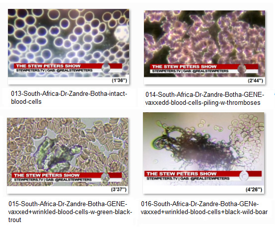 South Africa with Mrs. Dr. Botha: comparison between intact blood cells and GENE vaxxed wrinkled blood cells with objects in it like a trout or a wild boar [1]