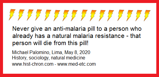 Report by Dr. Wolfgang Wodarg (May2, 2020): People with genetic malaria resistance D6PD (favism) die with the anti-malaria drug with chloroquine