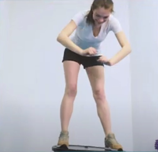 Beinübung zur Stärkung der Oberschenkelmuskulatur, die die Kniescheibe nach innen zieht [9] - Physiotherapie auf dem Federbrett [10]