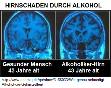 [1] Hirn von einem gesunden Menschen (links) und ein reduziertes Alkoholiker-Hirn (rechts):