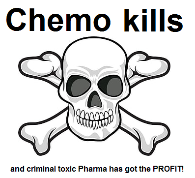 [14] Chemotherapie tötet und die kriminelle Gift-Pharma hat den Gewinn - mit Totenkopf+Knochen: