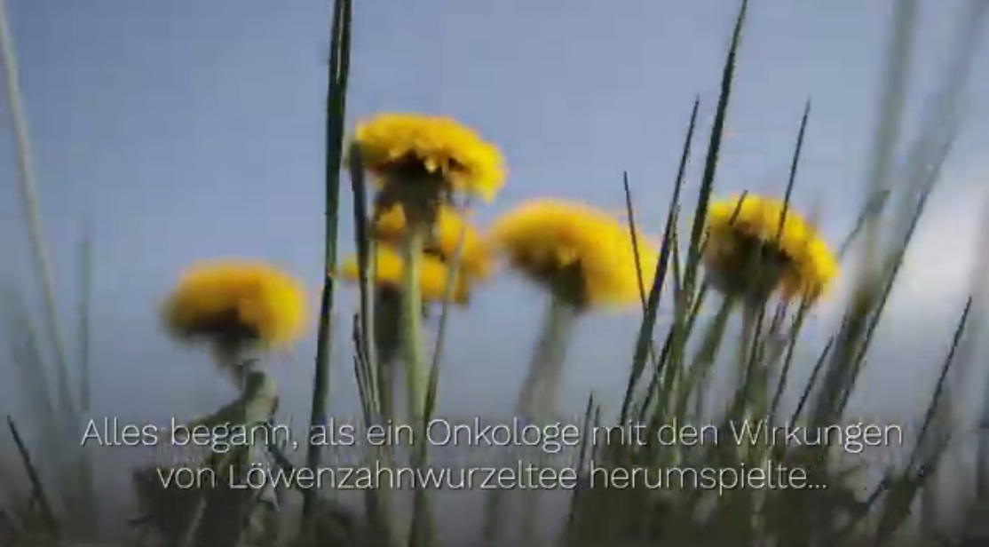 Wie schon im Jahr 2009 (1'39''): Alles begann, als ein Onkologe mit den Wirkungen von Löwenzahnwurzeltee herumspielte... (1'44'') und bmerkte, dass die Krebsrate korrellierte. Er beobachtete wiederholt positive Ergebnisse bei verschiedenen Krebsarten (z.B. Darmkrebs, Leukämie usw.), ohne die umgebenden gesunden Zellen zu schädigen (1'53''). Als Ergebnis dieser Arbeit betrachten mehrere Onkologen die Verwendung dieses Extrakts als eine der vielversprechendsten Behandlungen, die wir jetzt zur Verfügung haben! (2'2'')
