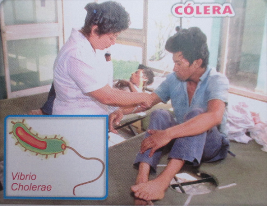 La cólera es una infección grave mayormente causada por agua no potable y por alimentación infectada rota. La infección afecta sobre todo el intestino delgado por la bacteria Vibrio cholerae. Siguen vómitos fuertes y diarrea fuerte al mismo tiempo. Muchas veces hay la infección sin síntomas, pero con aproximadamente 15% salen los síntomas y mueren entre 20 a 70% de ellos.
