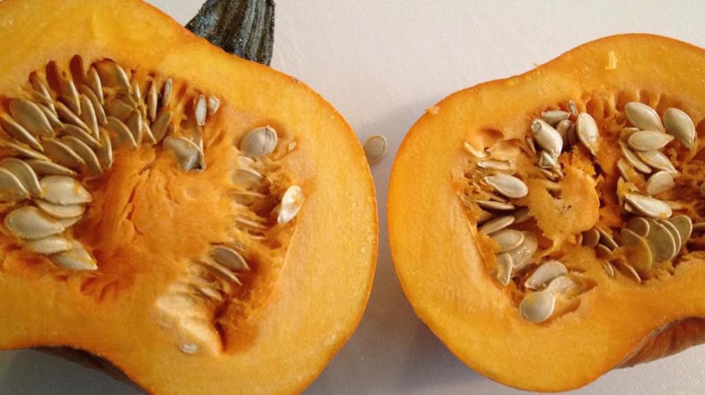 [38] Kürbis aufgeschnitten mit Kürbiskernen: https://sunshineandrainydays.com/how-to-make-pumpkin-puree/