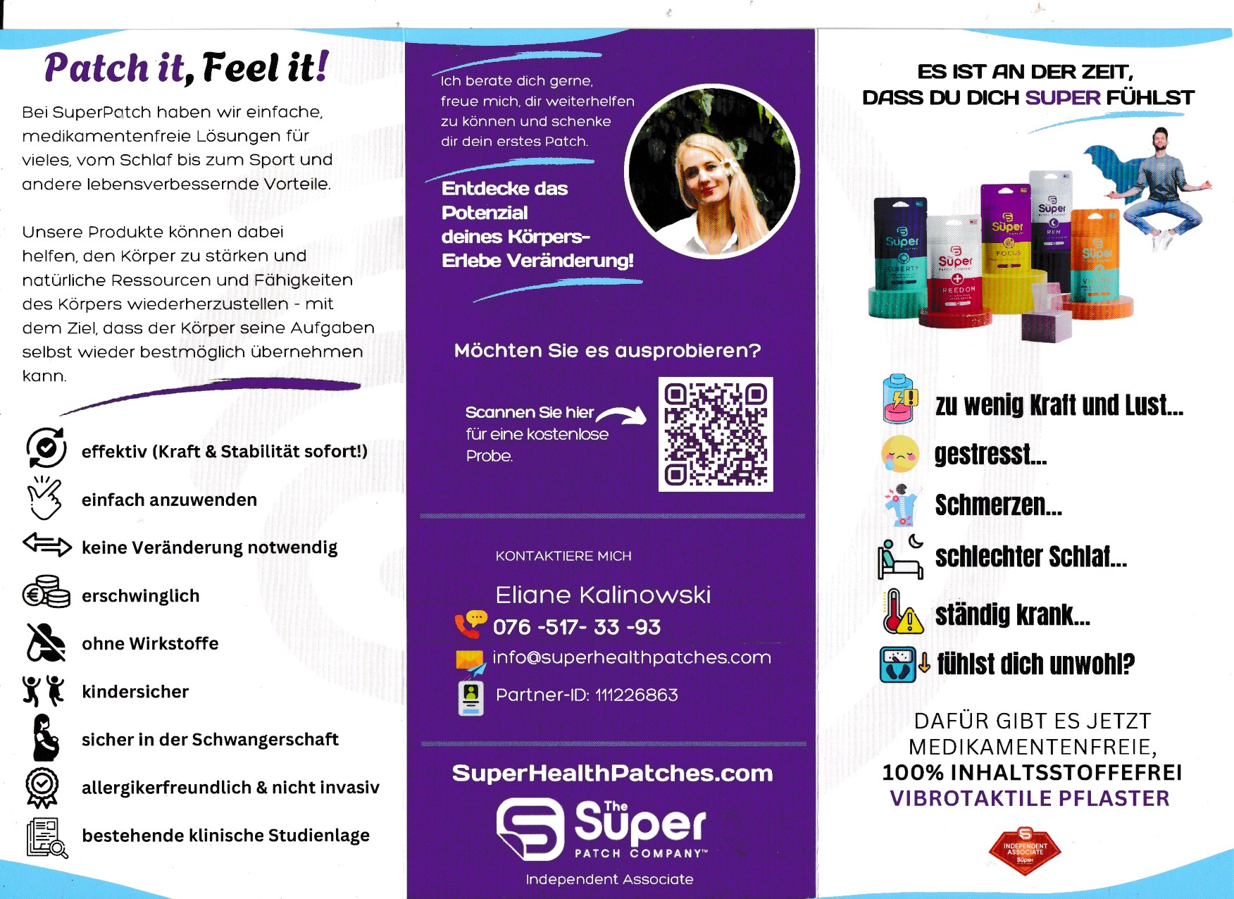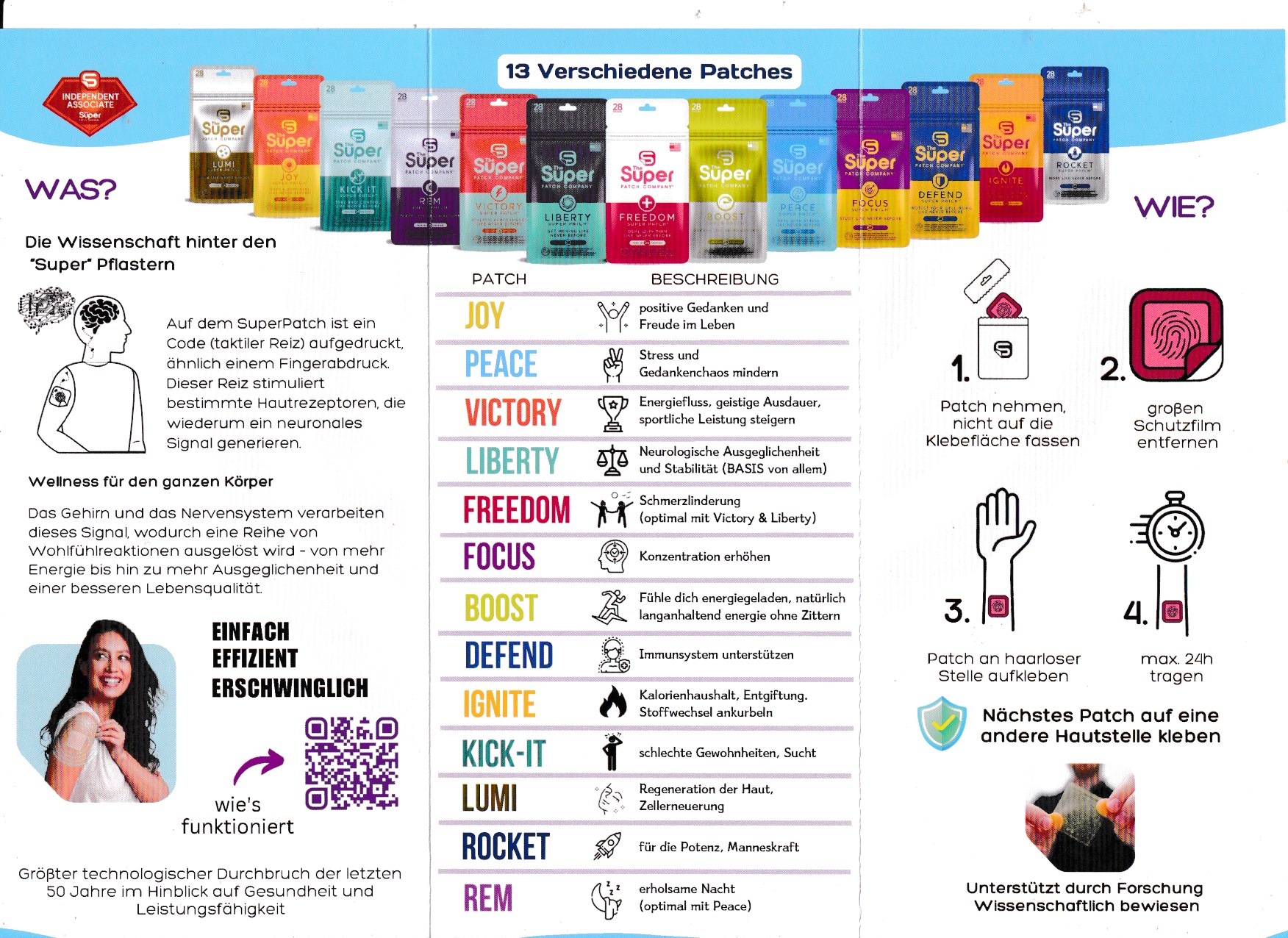 Ein Faltblatt zu den Rillenpflastern (Super Health Patches):