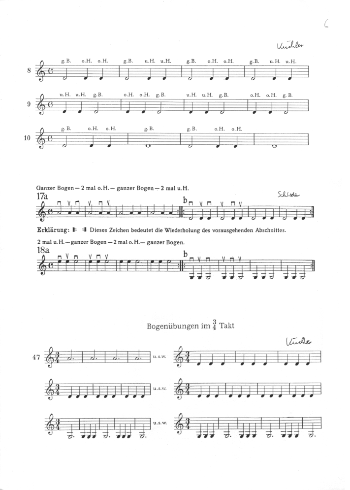 geraden Bogenstrich. Das Kind erlernt so das