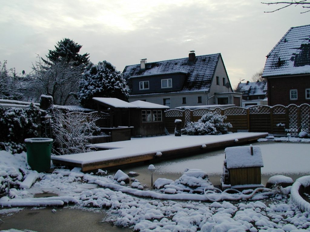 Zugefrorener Teich mit Wintersport [6] - Zugefrorener Teich mit Binsen für den Sauerstoffaustausch [7] - Zugefrorener Teich mit Steinen [8]