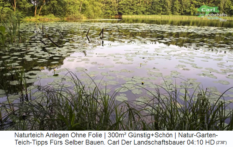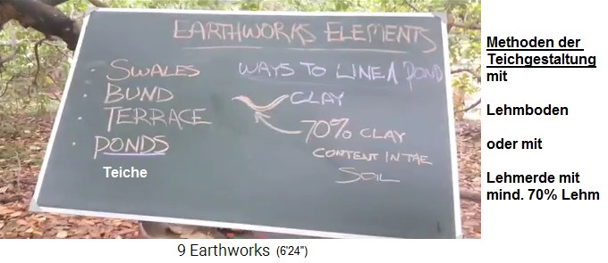 [67] Teiche mit Lehmboden oder mit Lehmerde mit mind. 70% Lehm: Video: 9 Earthworks: https://www.youtube.com/watch?v=oeAHynOPw-o&t=317s