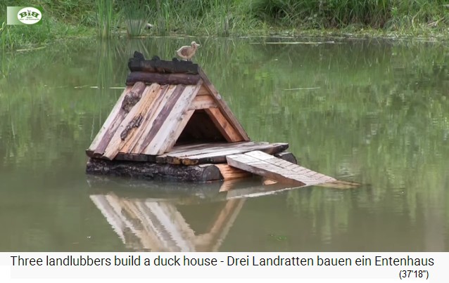[150] Enteninsel mit Entenhäuschen 09 mit Wasserfass unten dran 02: Video: Three landlubbers build a duck house - Drei Landratten bauen ein Entenhaus: https://www.youtube.com/watch?v=KzwUhdPA0hc&t=11s