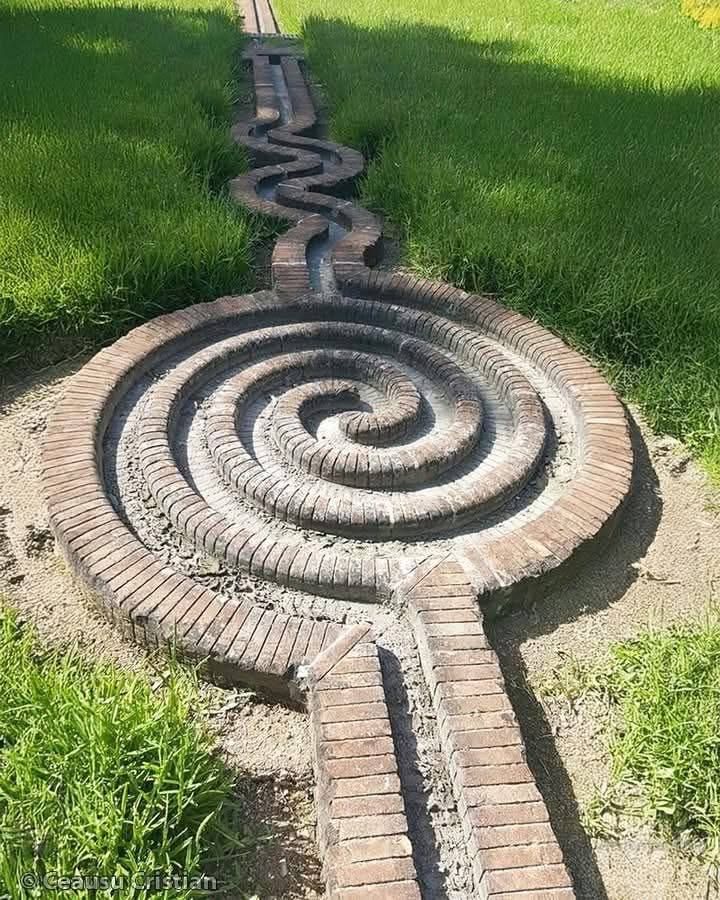 Ein atemberaubender Spiralwasserkanal, der nicht nur eine Freude für die Augen ist, sondern eine großartige Leistung der Wassertechnik! Die alten Zivilisationen wussten, was sie taten, als sie ähnliche Systeme erschaffen haben, um den Wasserfluss zu kontrollieren und die Bewässerung zu stimulieren.