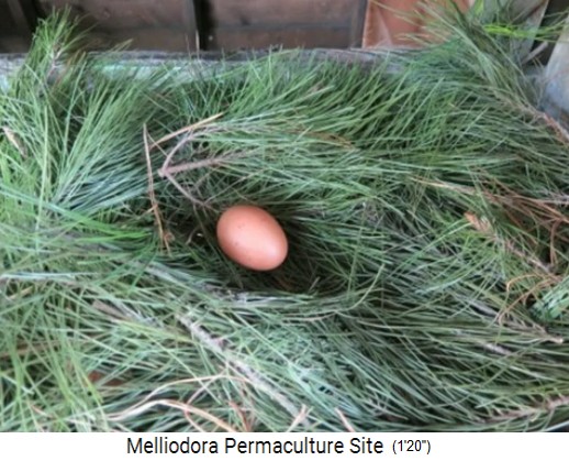 Melliodora 3 Wochen Volontariat, schwarze Hühner [43] - ein Ei in Pinienzweigen [44] - Esel auf der Wiese [45]