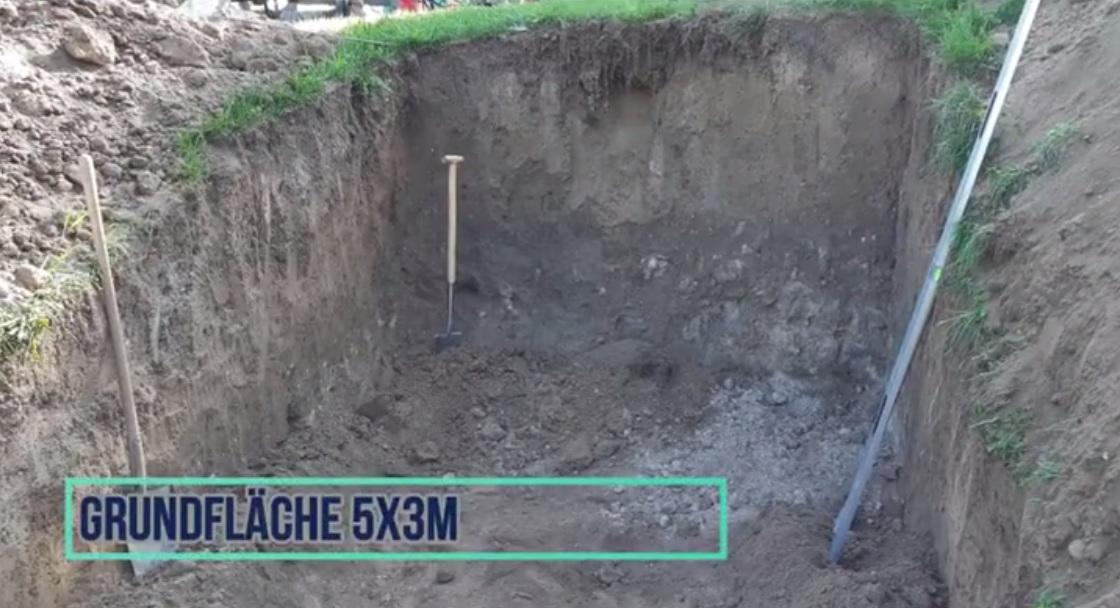 Die Grube ist bald fertig, 5x3m Fläche und ca.