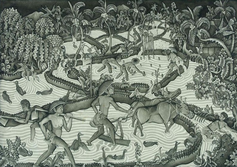Japan: Enten in Reisfeldern (Aigamo-Landwirtschaft) [2] -- Enten im Reisfeld 03: Bali, Zeichnung von 1940ca. [3]