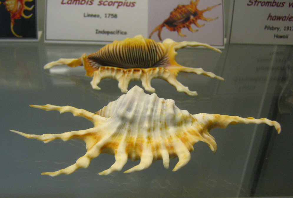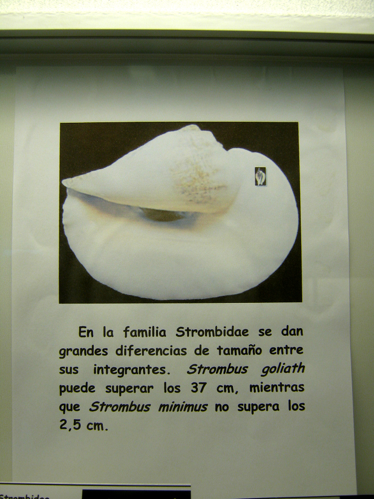 <In der Familie der Stombidae gibt es grosse Grössenunterschiede. Der Goliath-Strombus kann bis zu 37 cm gross werden. Dagegen wrid der Strombus minimus nur 2,5 cm gross.>