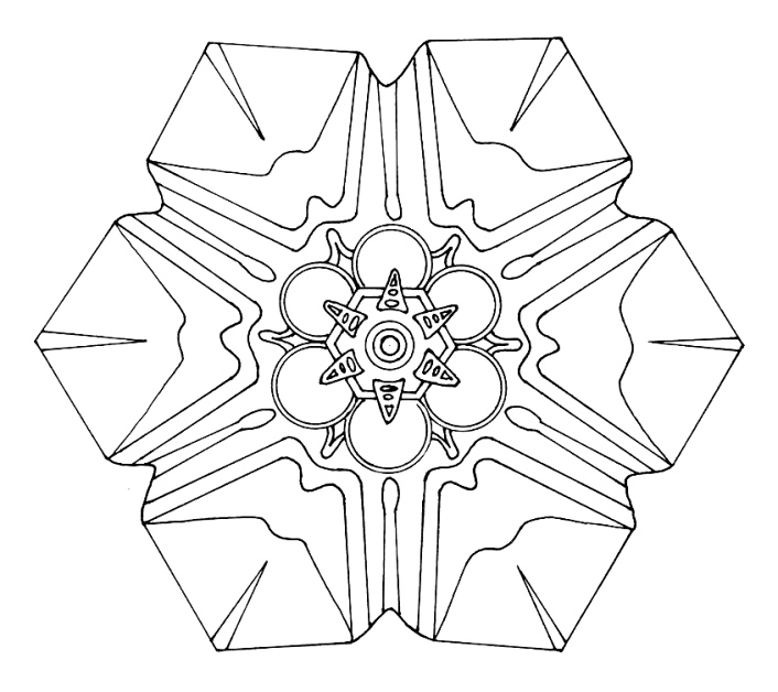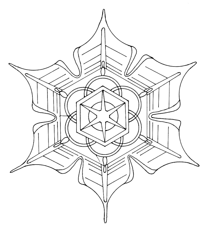 Mandala: Schneeflocken-Eiskristall mit Spitzen