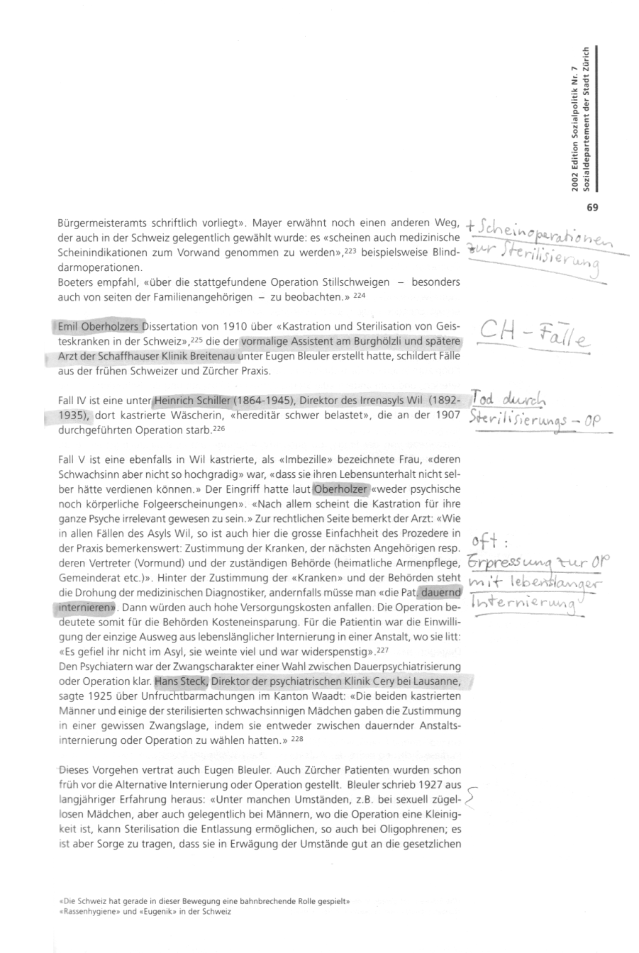 Thomas Huonker: "Fürsorge" in Zürich 1890 bis 1970; Sozialdepartement der Stadt Zürich 2002, S. 69