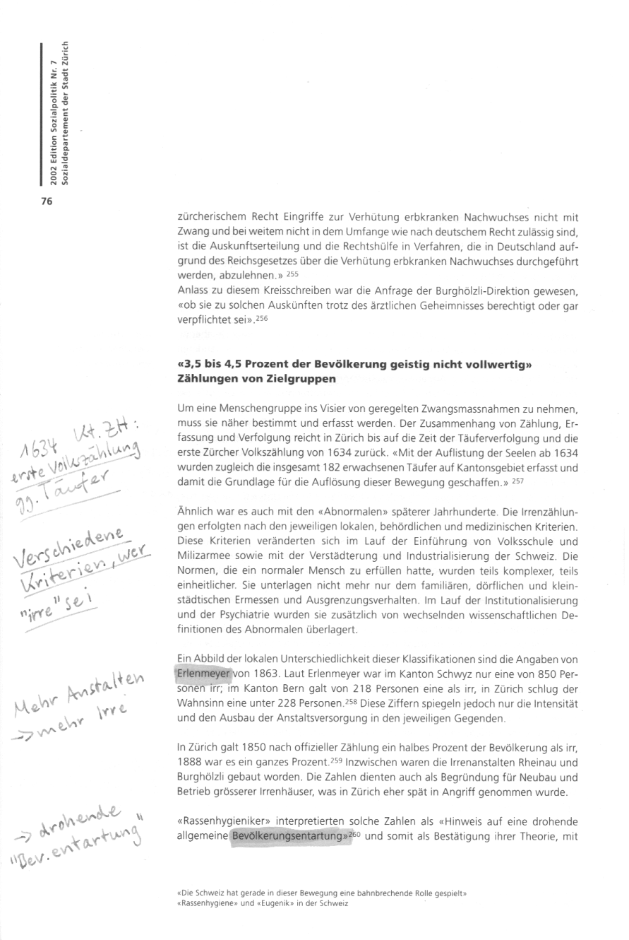 aus: Edition Sozialpolitik Nr. 7; Sozialdepartement der Stadt Zürich. Sozialberichterstattung '02; Bericht von Thomas Huonker, verfasst im Auftrag des Sozialdepartements der Stadt Zürich.