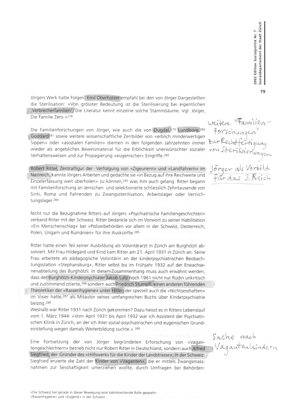 Thomas Huonker: "Fürsorge" in Zürich 1890 bis 1970; Sozialdepartement der Stadt Zürich 2002, S. 79