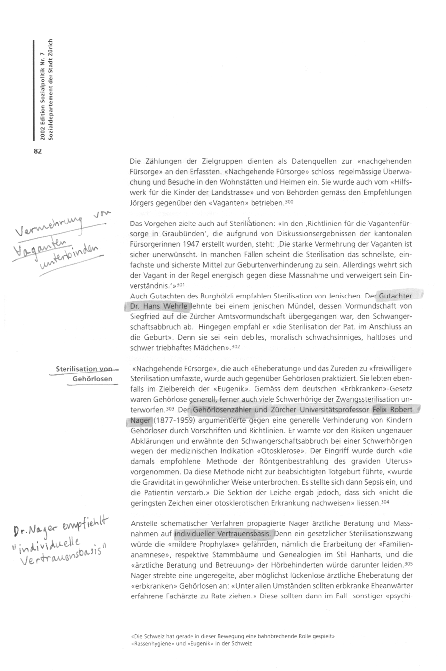 Thomas Huonker: "Fürsorge" in Zürich 1890 bis 1970; Sozialdepartement der Stadt Zürich 2002, S. 82