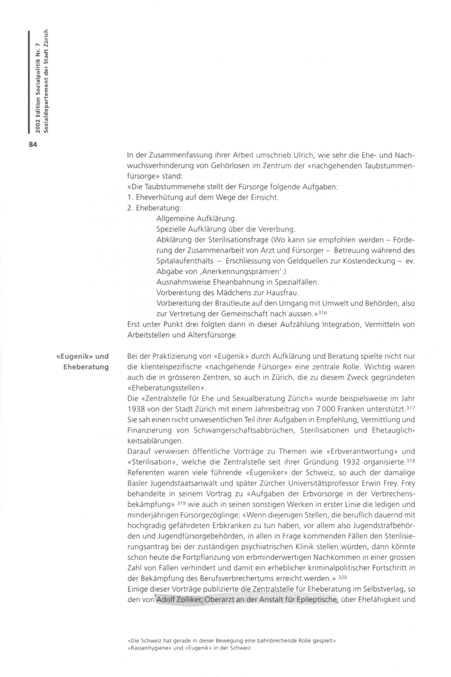 Thomas Huonker: "Fürsorge" in Zürich 1890 bis 1970; Sozialdepartement der Stadt Zürich 2002, S. 84