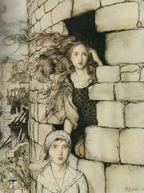 [8] Maleen und Kämmerin brechen aus dem Burgturm aus: https://www.pinterest.es/pin/500462577319993284/