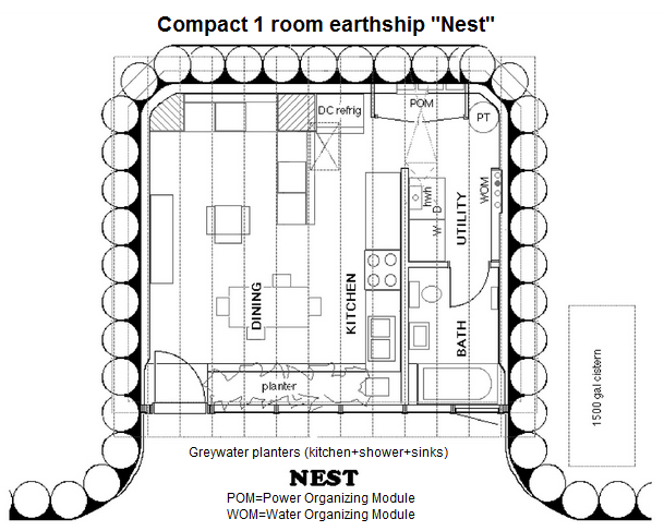 [35] Compact 1-room earthship "Nest", floor plan: https://www.arch2o.com/earthships-michael-reynolds/