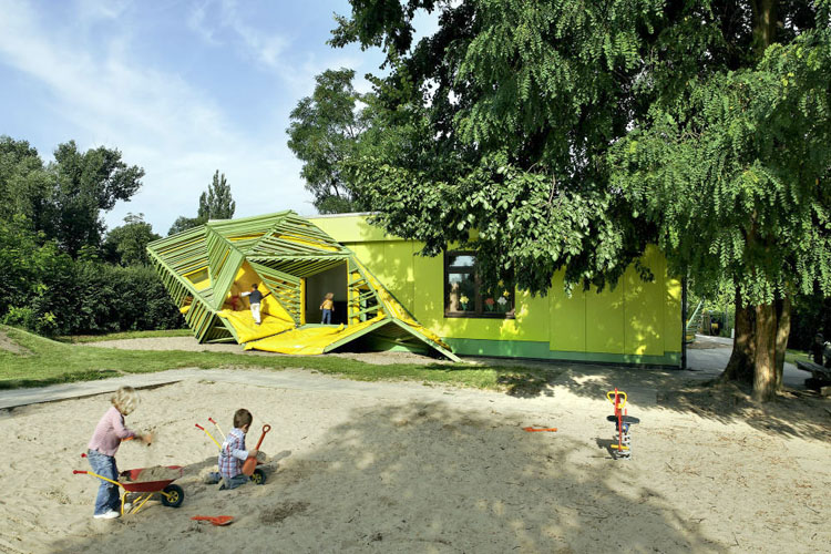 Die Baupiloten haben bereits einige andere Bausünden aus den fünfziger Jahren umgestaltet. Gerade viele Schulen und Kindergärten entstanden vor über einem halben Jahrhundert - Flach- und Plattenbauten mit wenig Rückzugsraum für Individuen und Kleingruppen. Die Baupiloten zeigten mehrfach, dass sich durch Um- und Einbauten aus tristen Räumen kindgerechte Traumwelten entwickeln lassen.