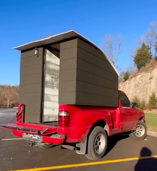 Tiny House auf einem Pickup in den "USA" am 13.9.2025: Sperrholzhütte auf der Ladefläche - Materialkosten 2350 Franken: