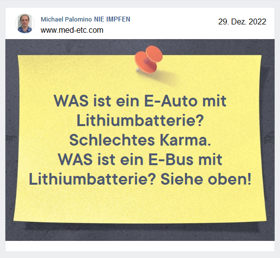 ideologisch getriebene Elektromobilitätswahn wird über