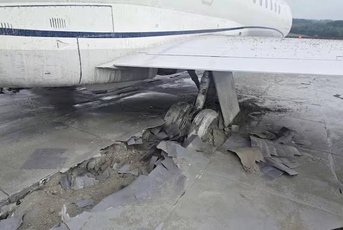 Flugzeug zu früh auf, kam von der Landebahn ab und fing
