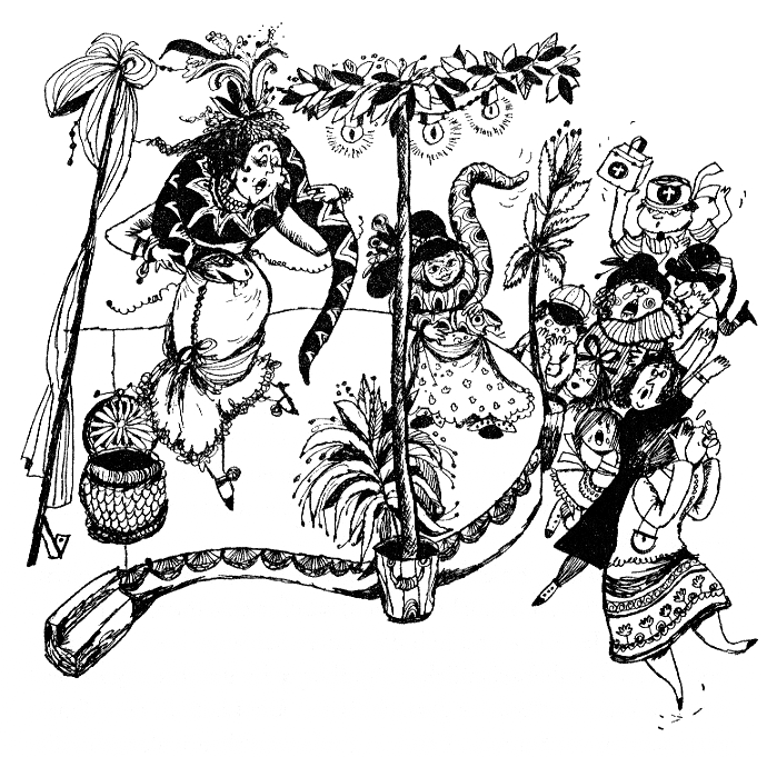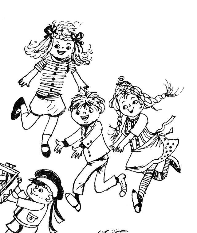 Pippi, Thomas, Annika and Mr. Nilsson are marching