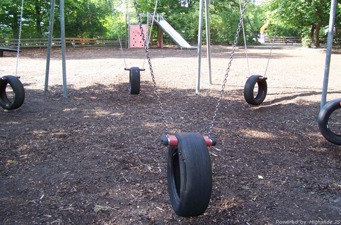 [tire11] tire swings in a standstill fixed too high, youth camping at Eyll Lake, NRW, Germany: http://www.jugendzeltplatz-eyll.de/Karten/index.html