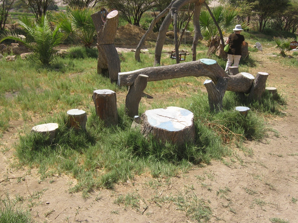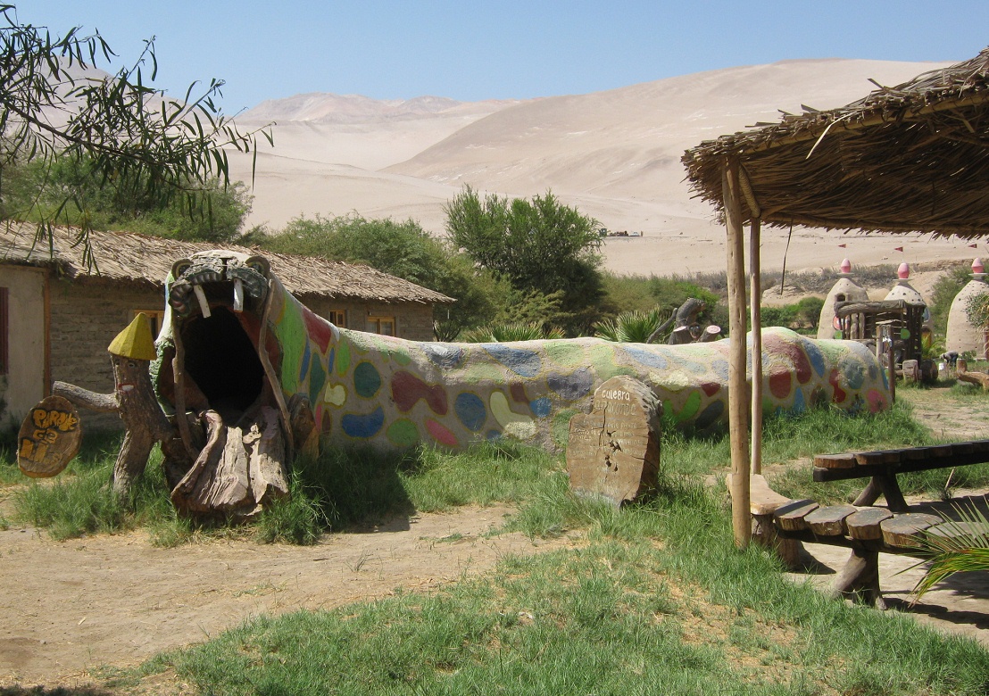 Spielschlange 03 aus einem Holzstamm, Sicht von hinten, auf der Hari-Krishna-Farm "Eco Truly" im Lluta-Tal bei Arica, Chile [12]