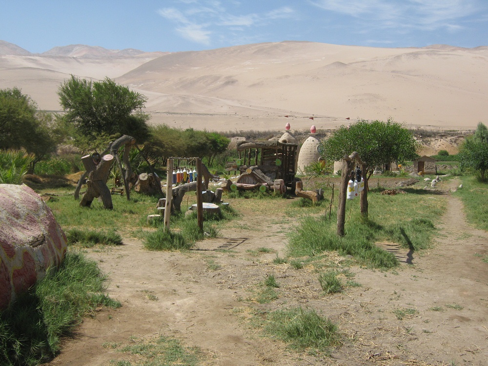 Flaschen-Xylophone auf dem Areal des Spielplatzes der Hari-Krishna-Farm "Eco Truly" im Lluta-Tal bei Arica in Chile [19]