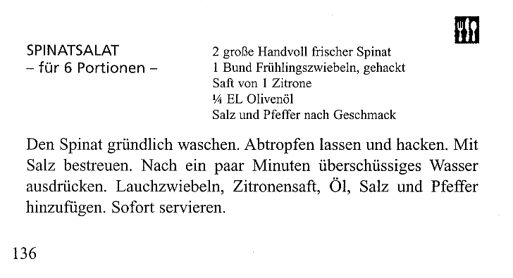 Ab und zu werden Sie in einem Rezept eine Zutat finden, die Sie entsprechend unseren Empfehlungen eigentlich vermeiden sollten. Meist handelt es sich dabei um sehr kleine Mengen (z.B. eines Gewürzes), die Sie, wenn Sie gesund sind und sich streng an die Ernährungsempfehlungen halten, vertragen werden.