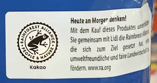 OFFIZIELL steht der Giftfrosch der Rainforest Allianz der Bill Gates-Stiftung für "eine bessere Zukunft" - gesehen bei NETTO in Deutschland